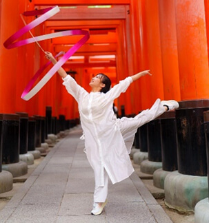 4歳より新体操を始め、全国大会で多数優勝、国際大会出場。現在は新体操とダンスを掛け合わせたパフォーマンスで、 香川を拠点にJAPAN EXPO Paris出演、B.LEAGUEパフォーマーなど国内外で活動。新体操の手具を用いたしなやかさと力強さを活かし、記憶に残る表現を追求している。