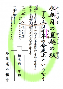 「夏越の大祓(なごしのおおはらえ)」とは、「師走(しわす)の大祓」から半年間、