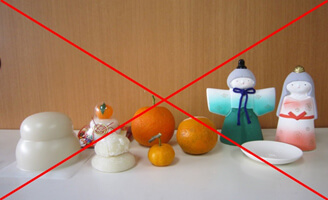 陶器やガラス、ぬいぐるみなどの燃えないものや、ミカン、餅などの生ものは御自宅で処分してください。
