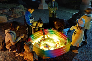伝統の讃岐提灯を使い、境内を幻想的に照らします