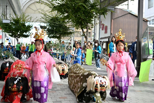 下拝殿の祭典後、丸亀町~田町など商店街にお祀り行列が繰り出します。