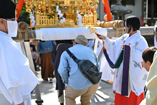 12:30から御神輿前にて神幸祭(しんこうさい)を行い、御神輿が出発いたします。